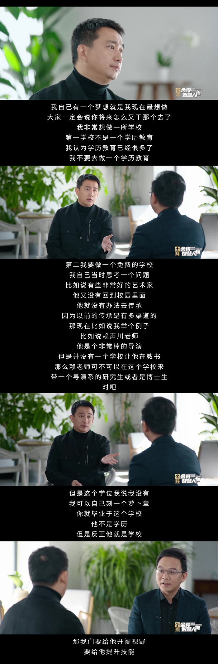 黄磊还追求多面的事业发展,他导过电影,舞台剧,也做戏剧节,做歌手,还涉猎商业……黄磊表示,自己的职业规划往往是听凭兴趣,他曾在综艺《向往的生活》中担任多季嘉宾,原因就是黄磊自己也享受这档综艺,“哪有这种机会专门跑到一地儿……然后在那剁剁肉馅,包包饺子……这种节目你就觉得好玩。”舍得是一种选择,选择热爱,方能坚持,选择兴趣,才有权衡。