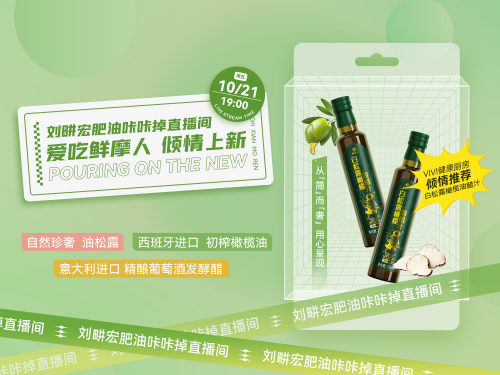 秉承着健康无添加、纯野自然的理念,巨星团队秘制开发,10月21日,“好油好醋,轻食好伴侣”白松露橄榄油醋汁于【刘畊宏肥油咔咔掉】直播间首次上新。