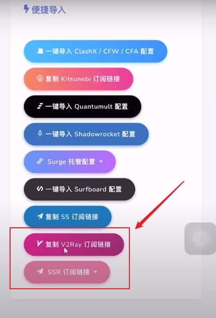 2、进入到机场后台,复制SSR订阅或者V2ray订阅