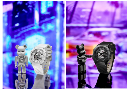 2024年NIVADA与BE@RBRICK首次跨界联动,在新年伊始为潮流爱好者们带来一场时间与潮流的华丽冒险;自诞生起就有极高话题度的国际潮牌BE@RBRICK,与贯彻“无惧无畏”精神的潮流腕表品牌NIVADA尼维达深度融合,以时间为载体、幻化出个性双熊,搭配经典黑、白高科技陶瓷材质,推出黑、白各300套限量联名礼盒套装。