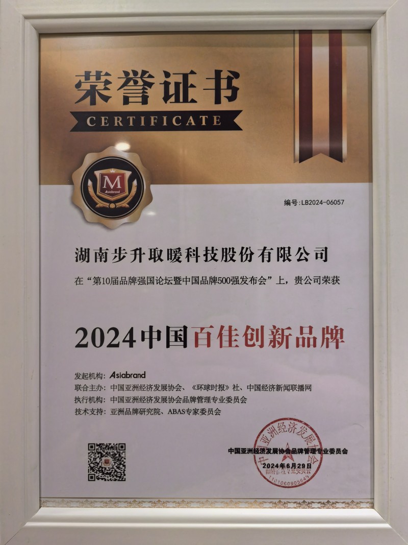 湖南步升取暖科技荣获“2024中国百佳创新品牌”,引领取暖行业新篇章