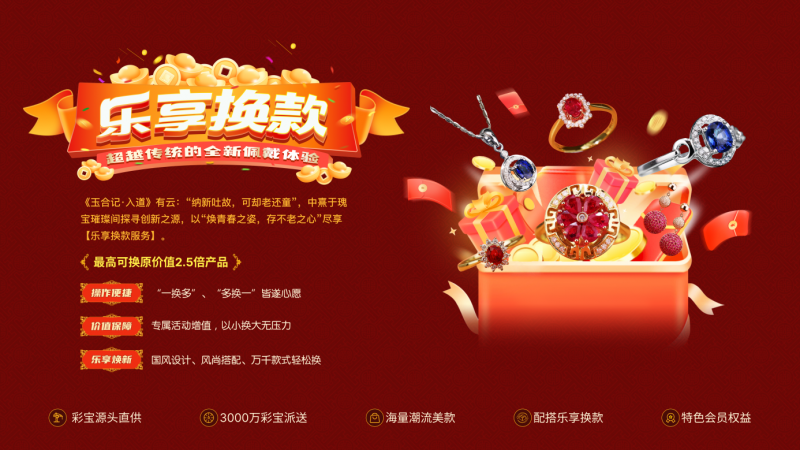 中熹珠宝创新推出的“乐享换款”服务,颠覆了传统珠宝佩戴的概念。该服务以产品价值增长活动及款式换新为核心,旨在让消费者在享受天然红蓝宝等稀缺宝石市场红利的同时,实现随时可换新搭配的自由。会员购买乐享换款产品后,只需参与完成平台任务即可获得活动增长值,该值可直接用于调换更高价格的彩宝产品。