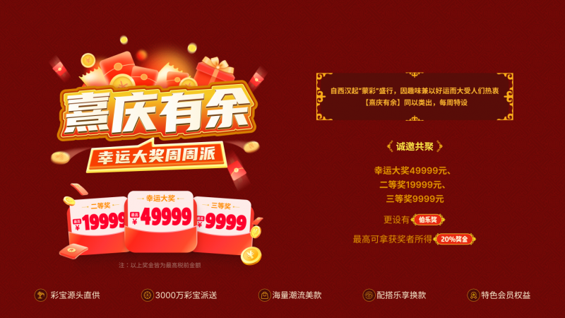 除了“百辇名驾”和“仁和夺宝”活动外,中熹珠宝还同步推出了“日新月著/熹庆有余”活动,前者以日日有红包,单个红包最高1000元,后者以周周有大奖,每周单项最高奖49999元为幸运有奖体验,提供高额奖金及丰厚礼品,确保每位参与者都能感受到满满的诚意与回馈;活动预热一经推出就受到广大网友热议,热议的原因可从一组数据看出: