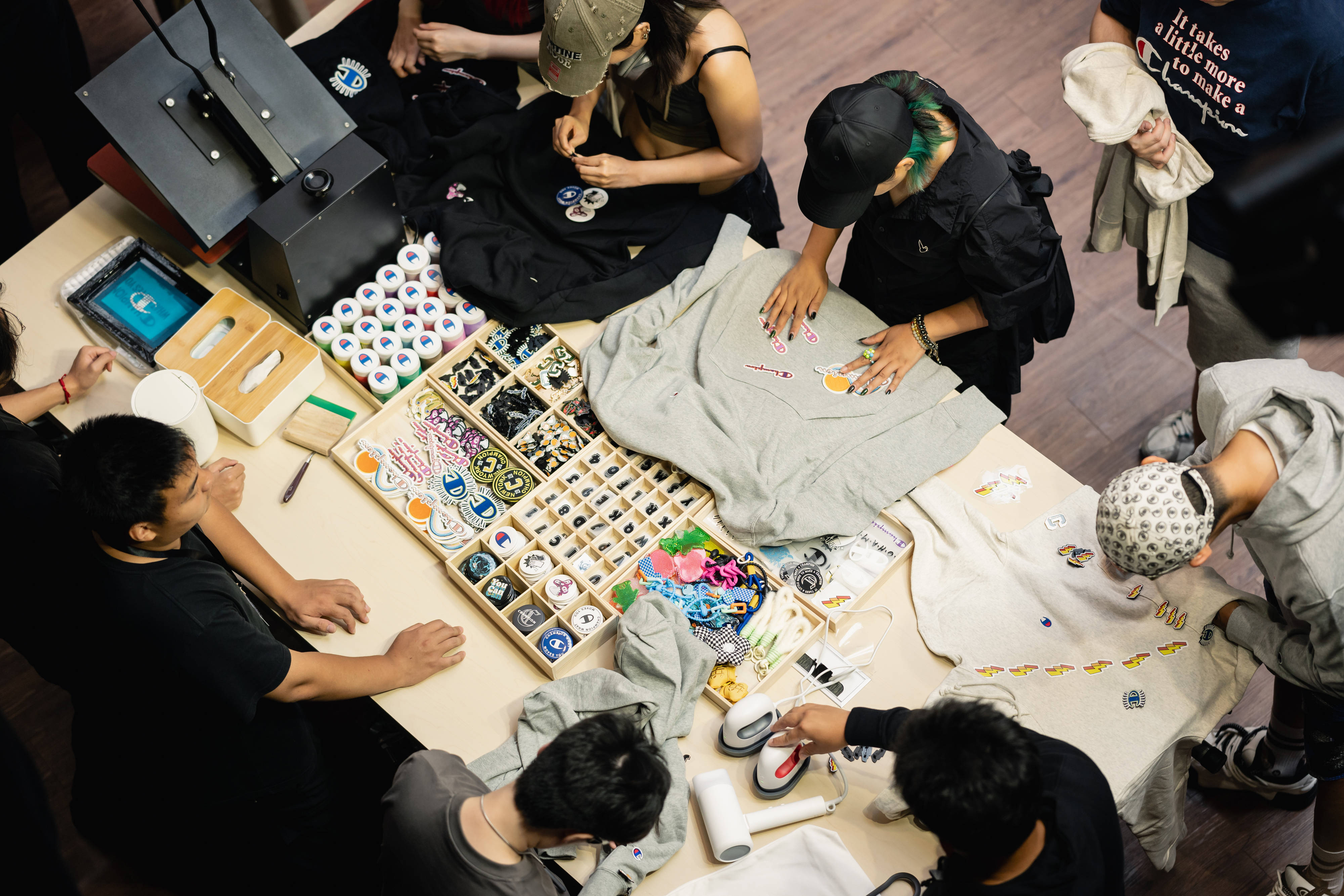 活动首日,三位艺术家心怀热爱响应本次企划号召,先行现身活动现场,并联合媒体到场交流灵感,体验手工创作魅力。此外,大众创意爱好者及一众艺术院校学生也深受创作力吸引,在活动现场恣意享受不同定制工艺所带来的巧妙创作体验。创意于卫衣画布无尽游走,个性由定制包袋多元诠释。一时间,活动空间内灵感洋溢,巧思已然流露于衣间,熠熠生辉,本次创意活动也在创作者们多面纷呈的本色表达中圆满落幕。