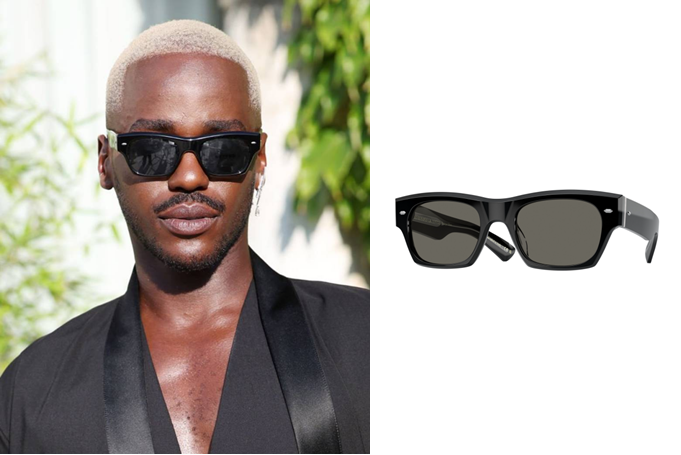 演员Ncuti Gatwa也配戴Oliver Peoples太阳镜出席第81届威尼斯国际电影节红毯。黑色廓形西装搭配黑色太阳镜,前卫几何前框结合加宽镜腿设计,以Oliver Peoples 独特细节点睛复古结构,营造率性不羁的型格魅力。