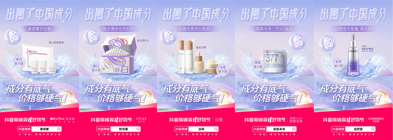 当下,美妆市场正面临建立中国品牌新范式的关键时刻,抖音电商成为国货品牌和消费者的重要纽带,为“中国成分”搭建舞台,国货品牌在台上各显其能,让更多的消费者认识“中国成分”,为国货品牌沉淀人群资产。