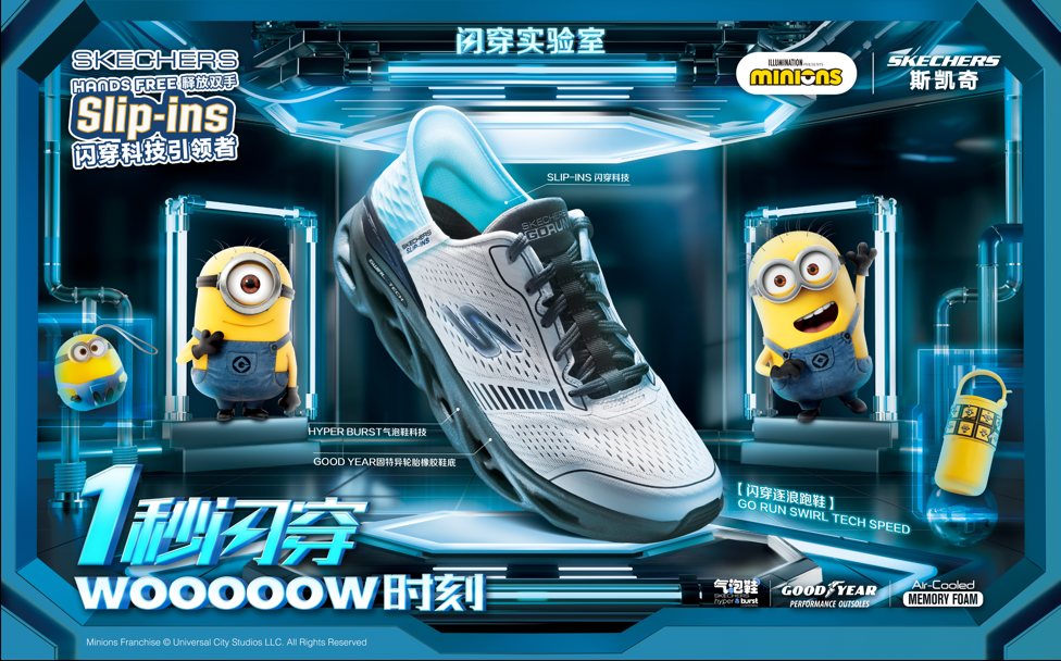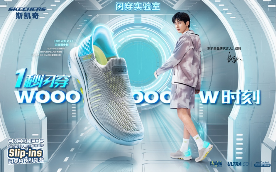 为了让更多消费者体验Slip-ins闪穿鞋的舒适美学,2024年3月,斯凯奇推出小黄人闪穿实验室,线下联动全国五城门店落地小黄人闪穿实验室,以有趣刺激的闪穿挑战强化Slip-ins闪穿鞋“一秒闪穿,即穿即走”的产品心智。2024年4月,斯凯奇官宣品牌代言人成毅,并同步发布由他出镜的闪穿科技大片。成毅以阳光形象演绎Slip-ins闪穿鞋当季新品,,向消费者传递舒适、时尚与科技兼具的品牌魅力。