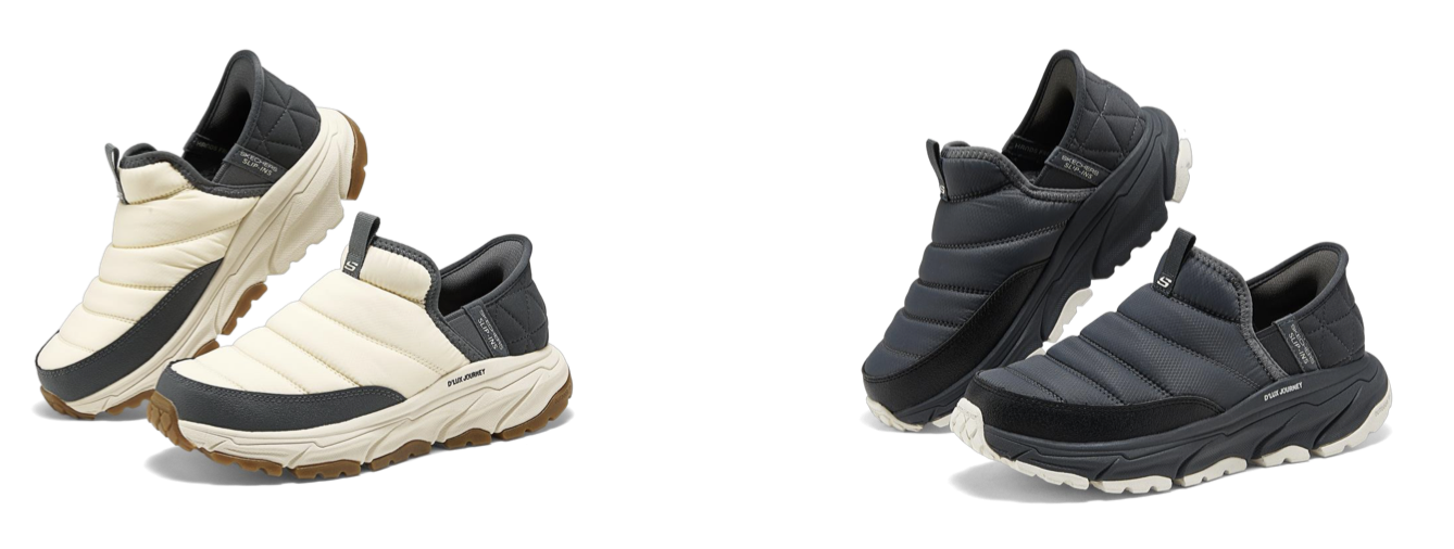 另一款重磅新品D'LUX JOURNEY闪穿城市户外鞋,以轻薄保暖、拒水干爽的鞋面,搭配宽敞前掌脚床设计,为双脚提供全方位的呵护与自由。大范围橡胶覆底为防滑耐磨性能加分,无论身处何种地形都能稳步前行,游刃有余。穿脱不弯腰不用手的Slip-ins闪穿科技加持,随心即刻轻盈出发。时髦玩趣的冬日毛绒感设计带来令人瞩目的出街体验,在保证户外功能性和行走舒适性的同时,诠释山系搭配新可能。