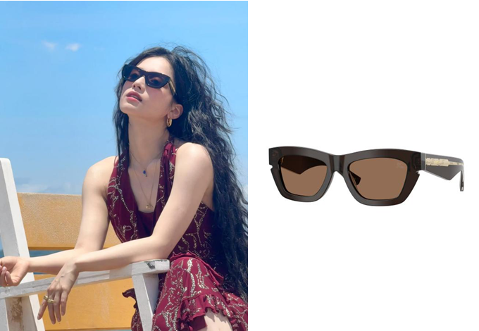 作为百年历史的英国品牌 Burberry,其深厚的英伦文化底蕴及经典独特的设计成为了代表传统与创新相融合的奢侈品牌之一。此次Vogue海边假日活动中,有两位明星以 Burberry 太阳镜点亮造型,经典廓形与细节处的优雅大气,让 Burbe