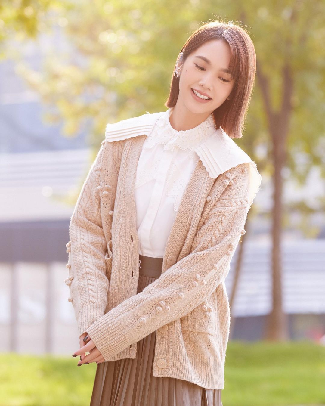 女星杨丞琳出道超过20年是演艺圈公认的“冻龄女神”,而她无论舞台造型或是私服都展现十足少女魅力,日前她上身法国轻奢品牌SANDRO 2021秋冬系列卡其色白领开襟毛衣搭配荷叶领衬衫,逆龄回春一波,两套冬季穿搭更是百搭到不行,很值得粉丝笔记。