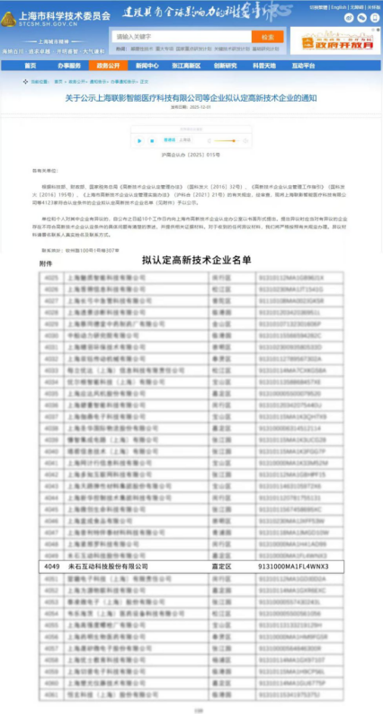 - 新闻未石互动科技股份有限公司再获国家级高新技术企业认定